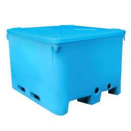Bin contenedor isotérmico con tapa 1200 lts. Fabricado 100% en Polietileno baja densidad lineal. Estructura Mono Block. Espumado en Polietileno 100% Virgen. Estructura con espuma Rígida aislante de Polietileno, densidad 25 Kg/m3. 100% Sanitario e impermeable. Espuma de celdas cerradas lo que no permiten el ingreso de líquidos percolados al interior de las pre cámaras del Bins, por lo tanto su nivel asepsia es muy superior a la espuma de Poliuretano. No contiene Poliuretano que es altamente Toxico. No permite la contaminación cruzada ni contiene productos tóxicos dañinos para la salud. Soportan apilados con tapa de carga 4 bins sin problema. Rango de Temperaturas de 90° a 70° grados C°. No se cristalizan en ambientes fríos gracias a su fabricación de Polietileno baja densidad lineal, Perdida de calor 0,5 grados en 36 horas a 10° C° en medio ambiente. (En casos de rompimiento por mala operación, son reparables sin perder sus características sanitarias y térmicas). Colores disponibles: Rojo, Azul, Verde Musgo, Turquesa, Amarillo, Naranjo, Grafito, Negro, Celeste.